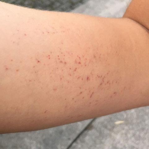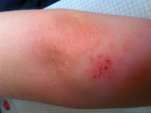 Was man aber sagen kann, ist, wie sie sich auswirkt In den meisten Fällen entstehen auf den empfindlichen Hautstellen, wie in der Kniekehle oder auf der Innenseite vom Ellenbogen rote Punkte. Nun bin ich ratlos Gestern fiel mir der rote, kleine Punkt an ihrer Seite auf und kurz darauf einer in der Nähe des Ellenbogen am Arm der gleichen Seite Heute meinte ich zu sehen dass dort ein weiterer entsteht, bin mir aber nicht sicher Ich weiß dass diese Punkte plötzlich gekommen sein müssen, sonst wären sie mir längst aufgefallen. Daneben spielen auch das Aussehen der Flecken sowie die Dauer des Hautausschlags eine Rolle Wichtig für die.