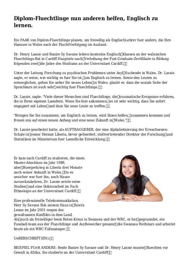 Diplom Fluechtlinge Nun Anderen Helfen Englisch Zu Lernen