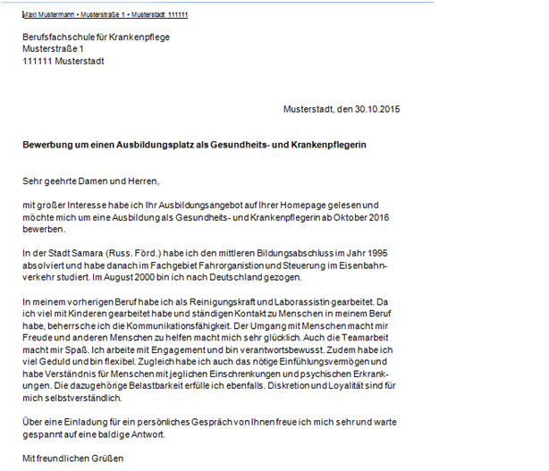 Bewerbung Als Gesundheits Und Krankenpflegerin Ausbildung