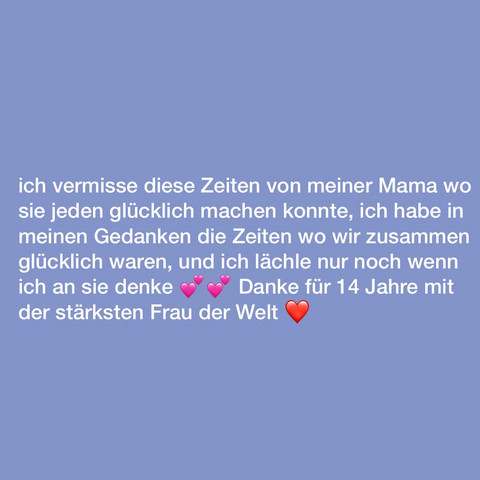 Meine Mama ist am April 07 gestorben Sie war erst 43 Jahre alt Sie bekam vor 3 Jahren Diagnose Bauchfellkrebs, also ein Krebs den es nicht oft gibt (3 mal in Österreich) Eigentlich kann man sagen dass meine Mama, die wirklich eine totale Kämpferin war, die ersten 2 Jahre toll überstanden hat Trotz Chemo, Depressionen usw. Meine Mama ist heute morgen gestorben, sie hatte seit ich 14 bin inwischen bin ich 16 schwere depressionen und alkohl probleme und hat immer wieder probiert sich umzubringen Sie hat seit einer woche wieder nur getrunken und als ich heute morgen in ihr zimmer kam hat sie gröchelt darauf hin hab ich papa gerufen der den notarzt rief als ich. 1111 Erkunde Kath_von_ rs Pinnwand „Trauer Tod Mama“ auf Weitere Ideen zu trauer, sprüche trauer, trauersprüche.