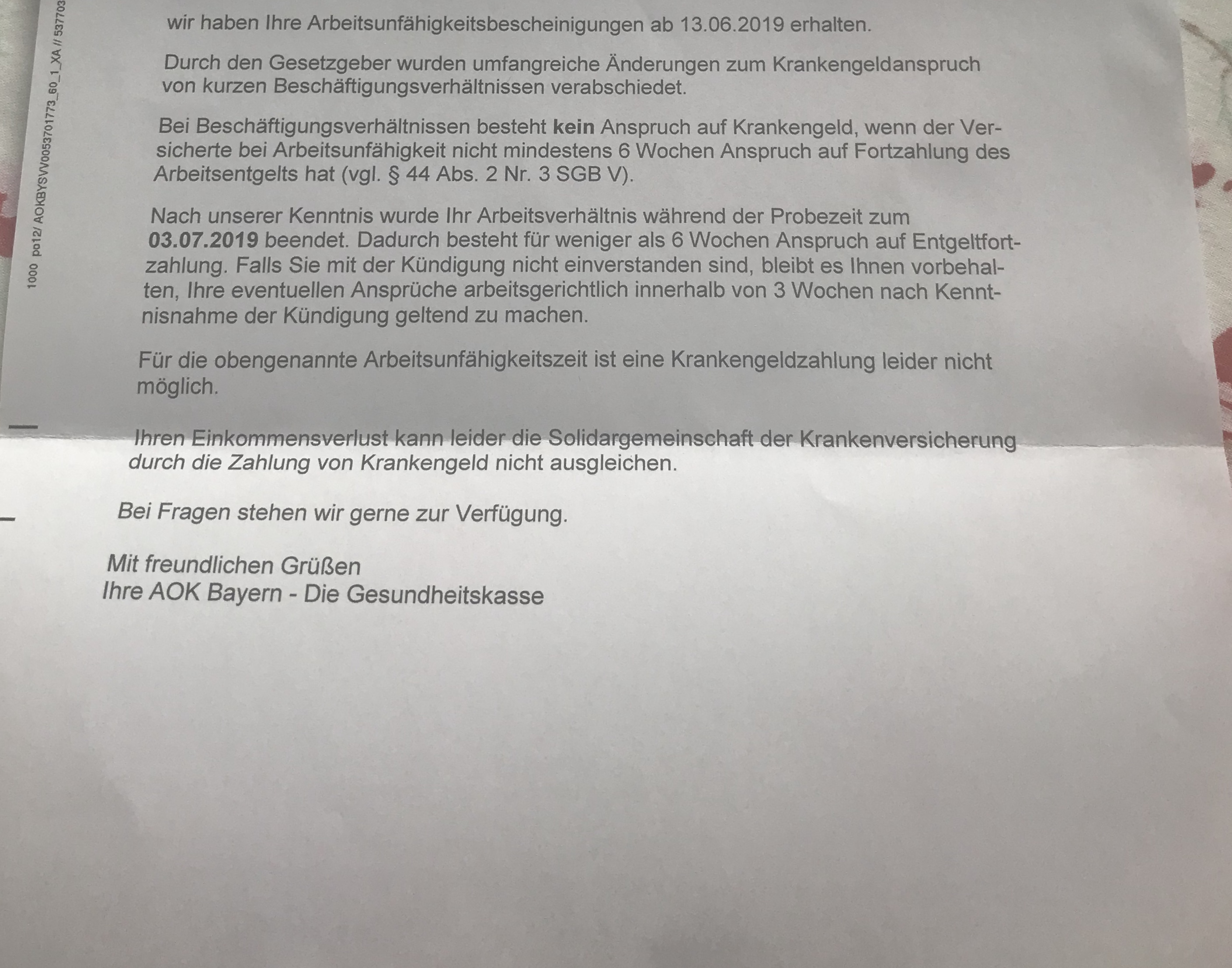 Krankengeld Abgelehnt Obwohl Ich Gekundigt Worden Bin In Der Probezeit Wegen Einer Knieverletzung Recht Arbeit Kundigungsfrist