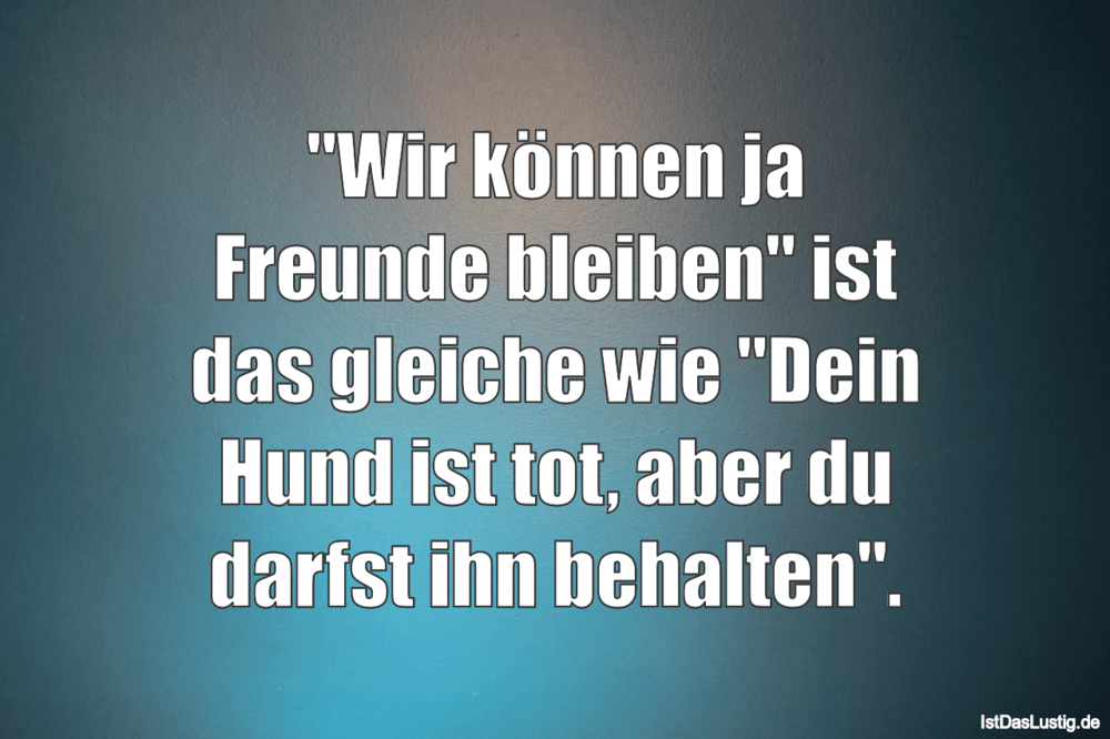 Wir Konnen Ja Freunde Bleiben Ist Genauso Wie Dein Hund Ist Tot Aber Du Darfst Ihn Trotzdem Behalten Tolle Spruche Und Zitate Auf Www Likemonster De