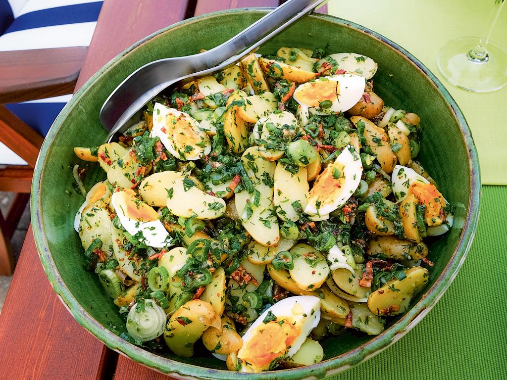 Kartoffelsalat Mit Ei Krautern Und Speck Vinaigrette Annemarie Wildeisens Kochen
