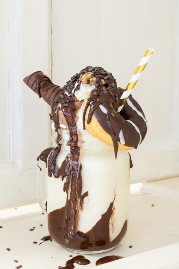 Schokoladen Milchshake Mit Donut Freak Shake Rezept Daskochrezept De