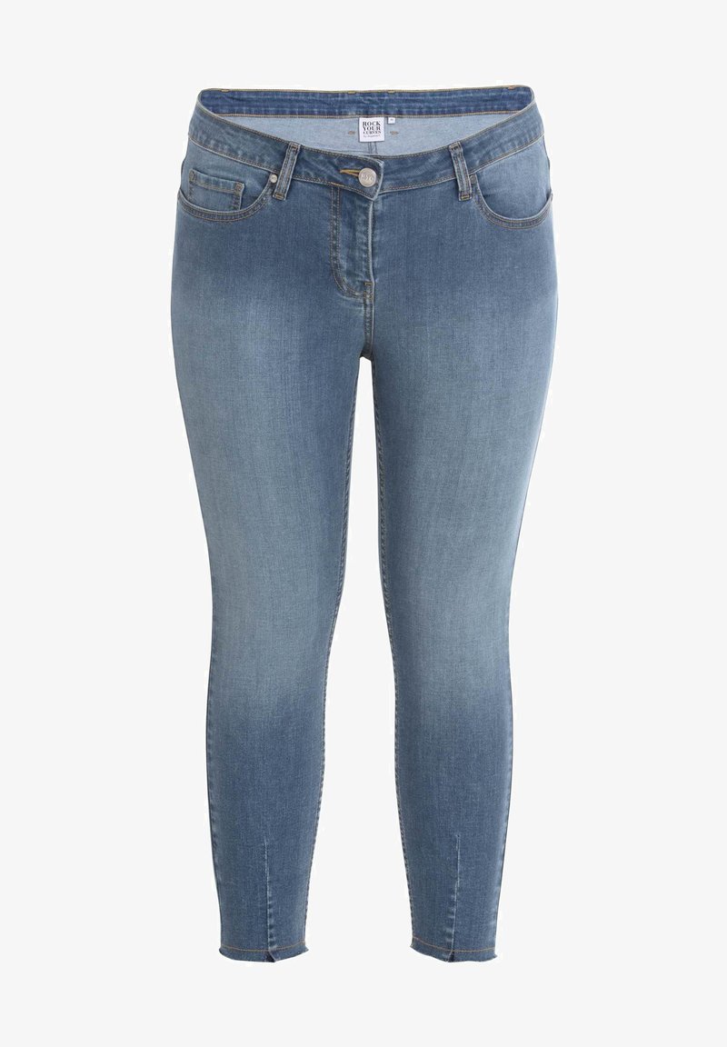 Rock Your Curves By Angelina K Mit Fransensaum Slim Fit Jeans Blue Denim Zalando De