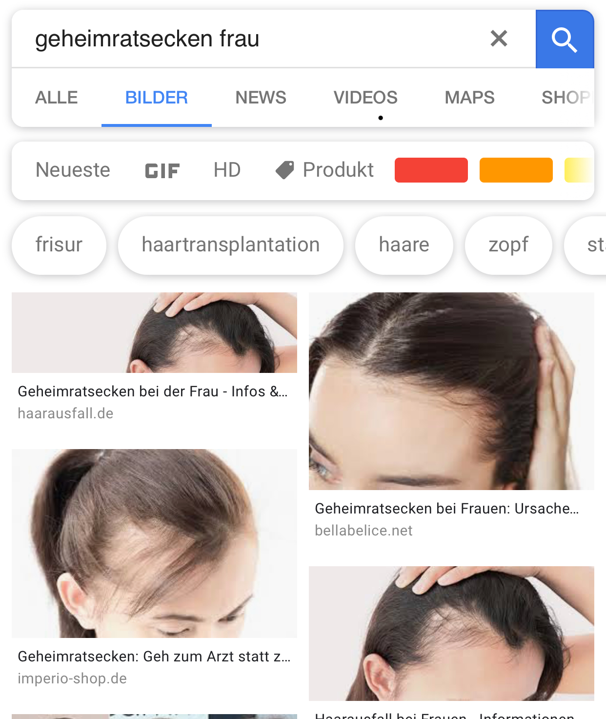 Geheimratsecken bei Frauen Die Ursachen im Überblick 1 Alter Bei den meisten Frauen lichtet sich die Stirn erst mit Eintritt ins Klimakterium, gelegentlich schon ein paar Jahre vorher im Zuge der hormonellen Umstellung Auch im weiblichen Körper wird das männliche Sexualhormon Testosteron gebildet. Geheimratsecken bei Frauen Ebenfalls ein gesellschaftliches Tabu, aber unter der Hand dennoch ein viel diskutiertes Thema, ist der genetisch bedingte Haarausfall bei Frauen Er macht sich häufig auch durch Geheimratsecken bemerkbar Teilweise setzt der Haarausfall schon im Alter von bis 30 Jahren ein, je nach Veranlagung der Betroffenen. O_O Ich habe jahrelang Probleme mit Haarausfall und Geheimratsecken gehabt und das allerbeste was ich soweit gefunden habe sind die Haarfasern.