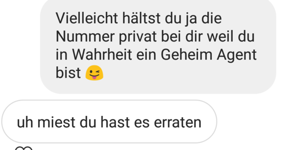 Cool Antworten Löschen Antworten Antworten Kommentar hinzufügen Weitere laden Neuerer Post Älterer Post Startseite Abonnieren Kommentare zum Post (Atom) Über mich Matthias Eberling Matthias Eberling, 1966 in Ingelheim am Rhein geboren, ist promovierter Politikwissenschaftler und war lange in Forschung und Beratung tätig Von 1991. Ich muss ihm antworten und es unbedingt herausfinden!“ 3 Kompliment Necken im Chat Frauen werden bekanntlich mit Komplimenten überhäuft, von Männern die auf ihrer Schleimspur ausrutschen und dabei ganz böse auf die Nase fallen Deshalb machst Du es geschickter beim Flirten. ★UNENDLICHER FUN MIT NEUEN RÄTSELN!★ Kannst du die Wörter erraten und alle Levels freischalten?.