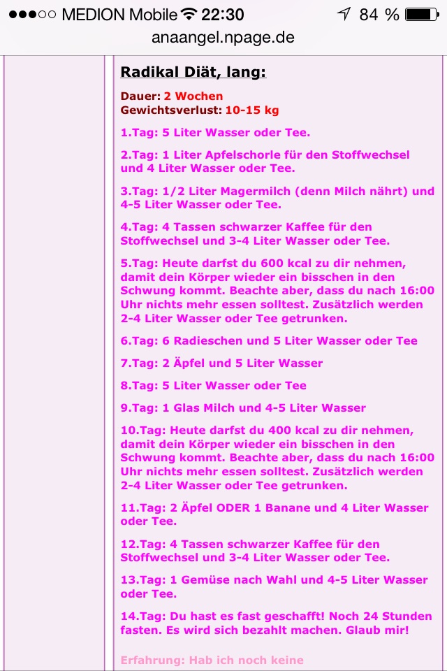 Radikal Diat 2 Wochen