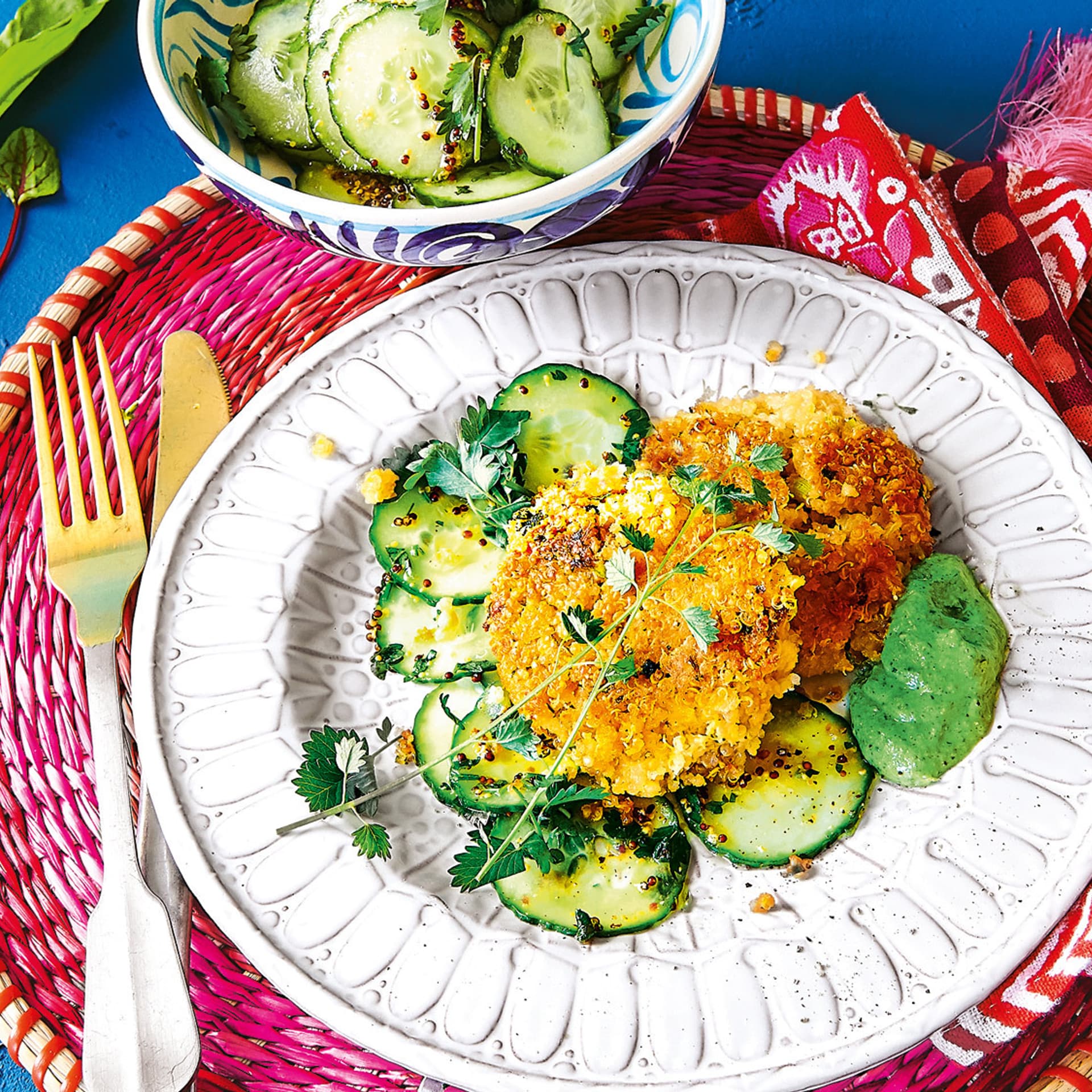 Quinoa Mit Brokkoli Pastinakenpuffern Rezept Gusto At